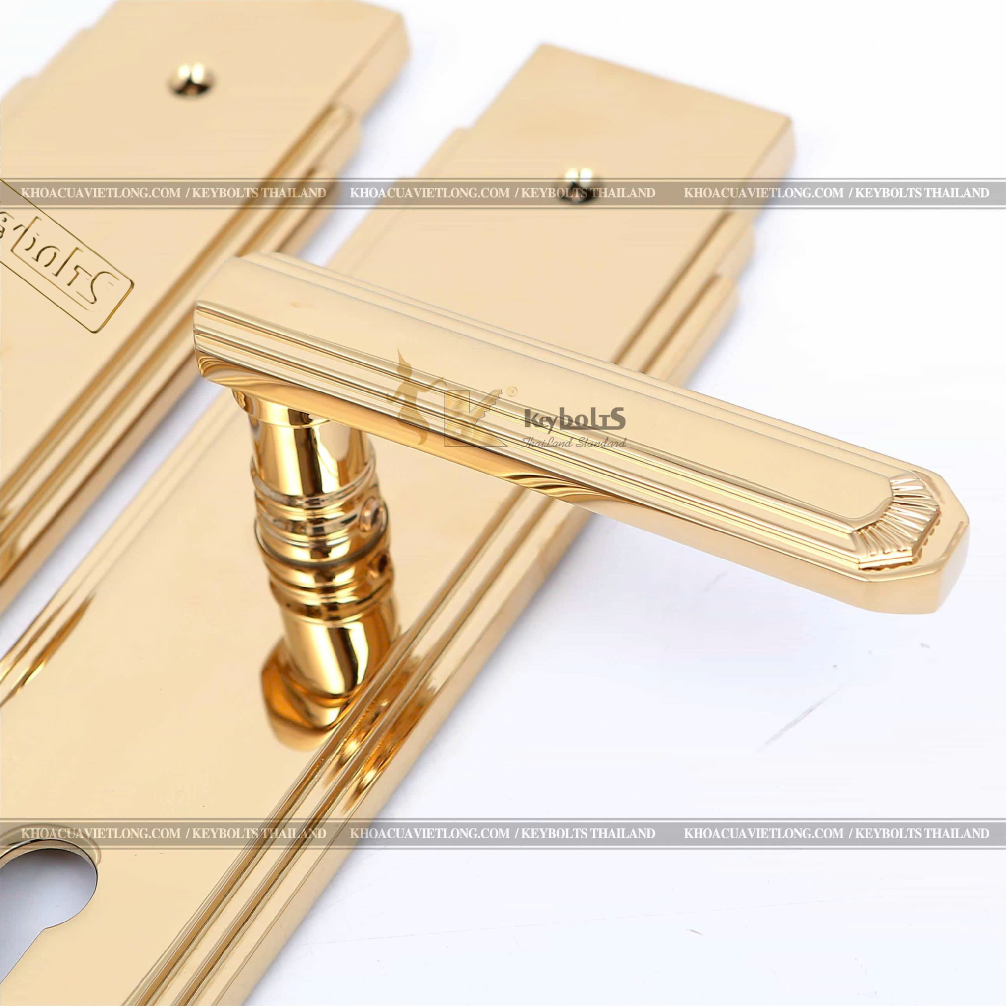 + Sản phẩm khóa tay gạt KB 108-M-PVD thích hợp sử dụng cho cửa gỗ cao cấp, 1 cánh và 2 cánh