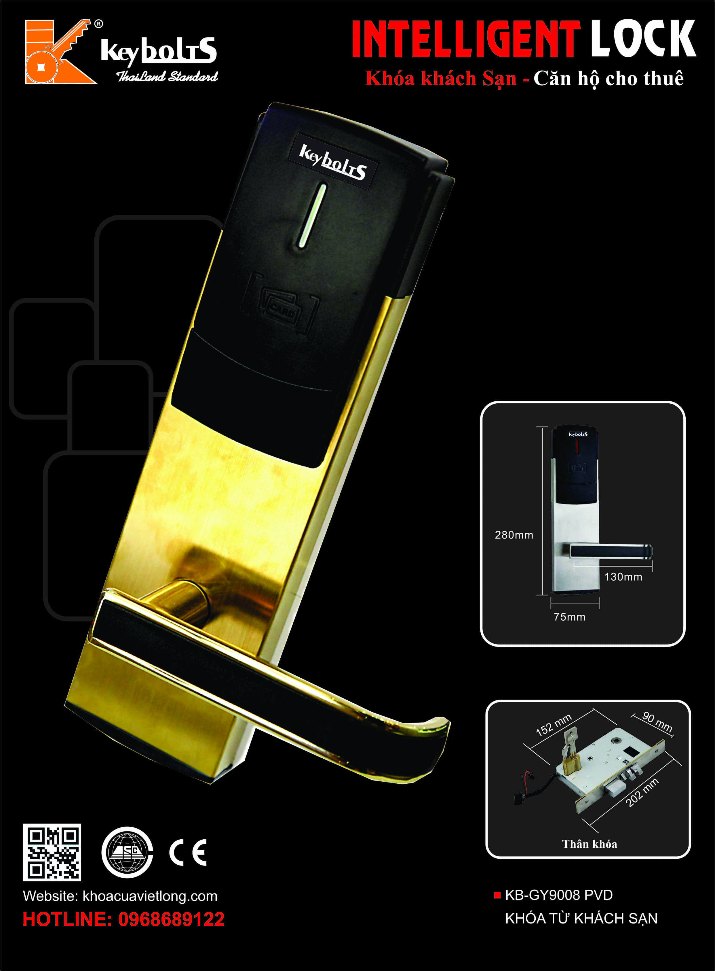 Khóa Thẻ Từ Khách Sạn KB-9008 PVD
